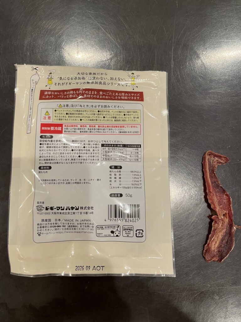 無添加良品シリーズです。それほど硬くなく食べやすいようで2匹とも大好きです。